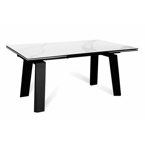 Стол обеденный керамический раздвижной PANAMA 160 ONIX CER на металлокаркасе, столешница керамика, 160(240)х90 см (белый оникс глянец/черные ножки)