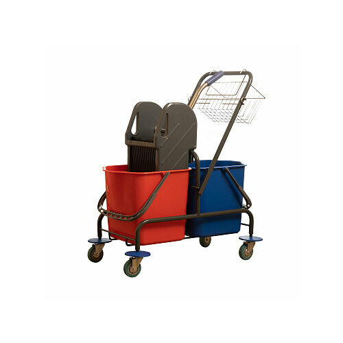 Двухведерная уборочная тележка с корзинкой