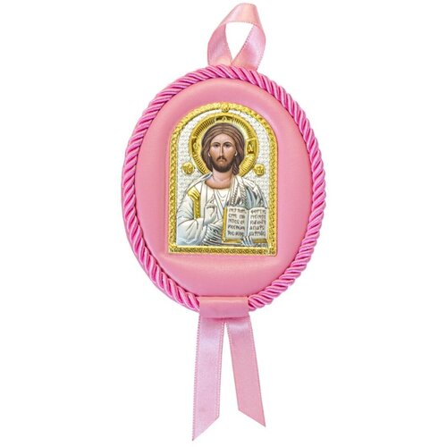 Икона детская, Спаситель, овальная, розовая кожа 7х9 см.