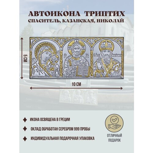 Икона серебряная автомобильная триптих 4х8 см.