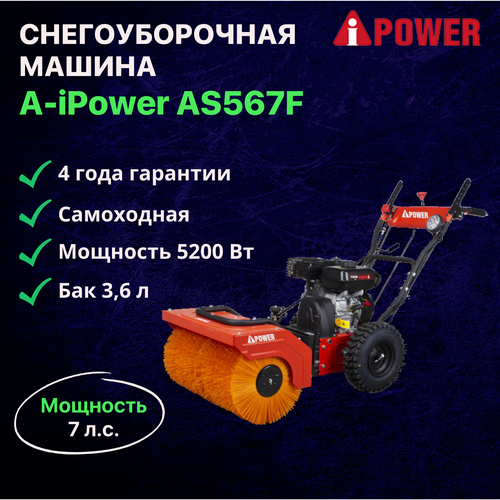 Снегоуборочная машина A-iPower AS567F / Снегоуборщик самоходный бензиновый 4-тактный двигатель 212 куб см 7 л. с. 5200 Вт легкий старт бак 3,6 л