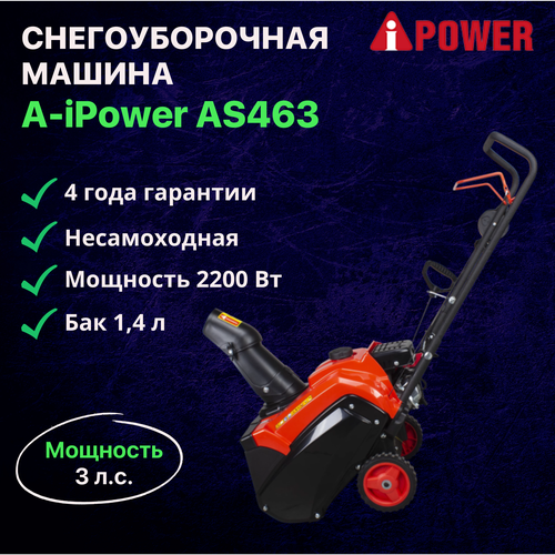 Снегоуборочная машина A-iPower AS463 / Снегоуборщик несамоходный бензиновый 4-тактный двигатель 99 куб см 3 л. с. 2200 Вт бак 1,4 л