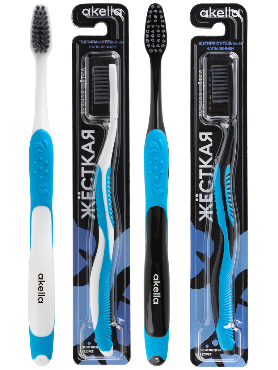 AKELLA Зубная щетка для взрослых c угольным напылением, жесткая