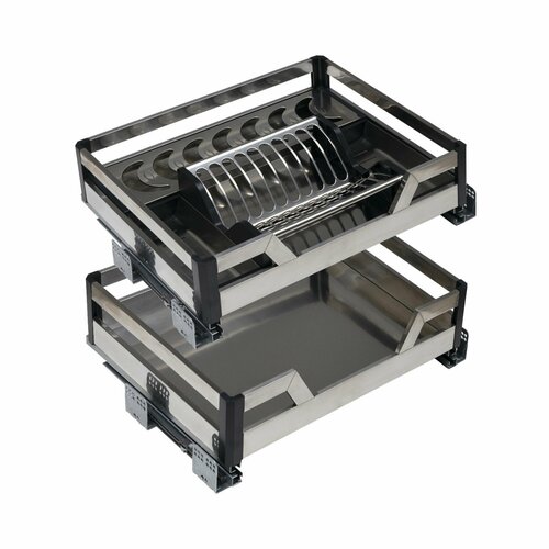 Корзина с сушилкой выдвижная PRIME LINE 2-ух уровневая в модуль 600 мм , с доводчиком, нержавеющая сталь