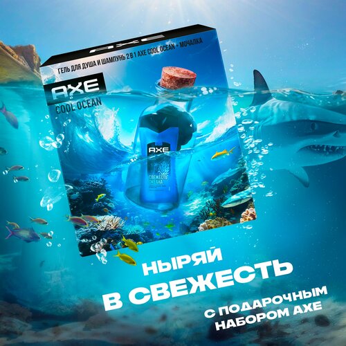 Подарочный набор Гель для душа и шампунь 2 в 1 + мочалка Axe Cool Ocean, 250 мл 103552613123
