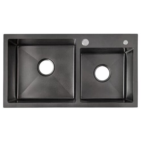 Мойка двойная AKS прямоугольная, нержавеющая сталь, PVD черная сталь + дозатор в цвет мойки, без сифона
