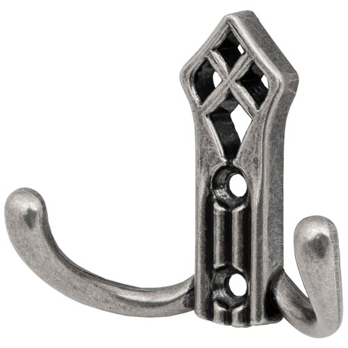 Крючок мебельный настенный для одежды Aks PALAZZO двухрожковый античное серебро 1 шт.