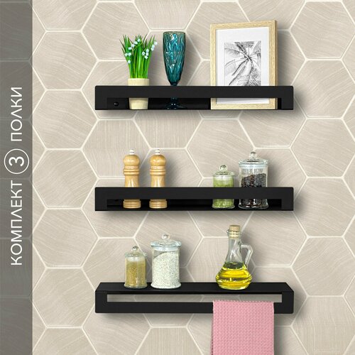 Стеллаж Alvente для хранения для кухни и ванной на стену этажерка, полки настенные 50 см 3 шт