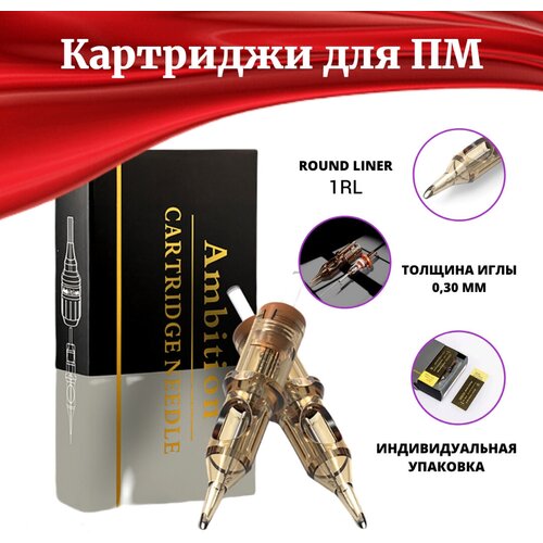 Ambition Картриджи для тату, татуажа, перманентного макияжа Round Liner 1RL 0.30мм 20 шт/уп