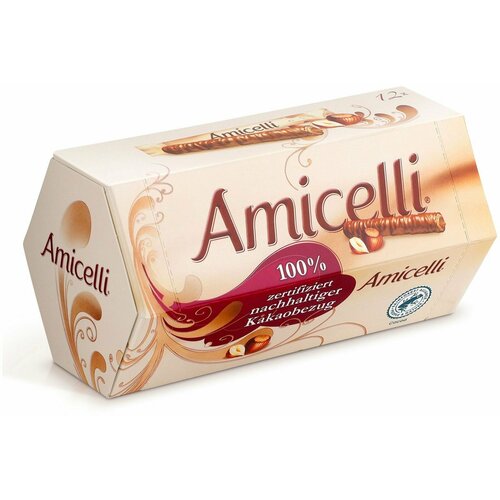 Amicelli - это бренд кондитерских изделий, который был создан компанией Ferrero в 1993 году. Основной продукт бренда - это изысканные шоколадные вафли, которые состоят из хрустящей вафли, покрытой слоем нежного молочного шоколада. Шоколадные вафли Amicelli пользуются популярностью благодаря своему неповторимому вкусу и высокому качеству. Бренд Amicelli известен своим стильным и элегантным дизайном упаковки, что делает его привлекательным как для покупателей, так и для подарков. Благодаря своей узнаваемости и безупречной репутации, Amicelli заслужил место среди ведущих брендов кондитерской промышленности.