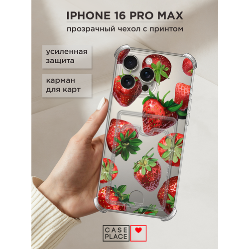 Чехол на Apple iPhone 16 Pro Max (Айфон 16 Про Макс) с картой и принтом Сочная клубника 4