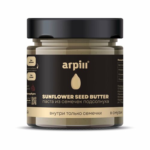 Подсолнечная паста без добавок Arpi из семечек подсолнуха - натуральная, полезная ореховая паста // Sunflower Seed