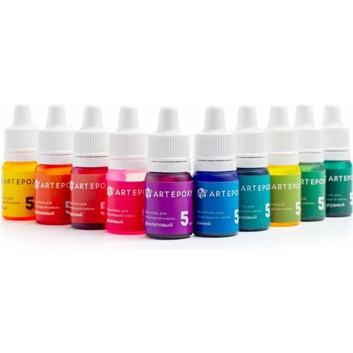 ArtEpoxy Набор жидких красителей для эпоксидной смолы и силикона, 10 цветов по 5 мл