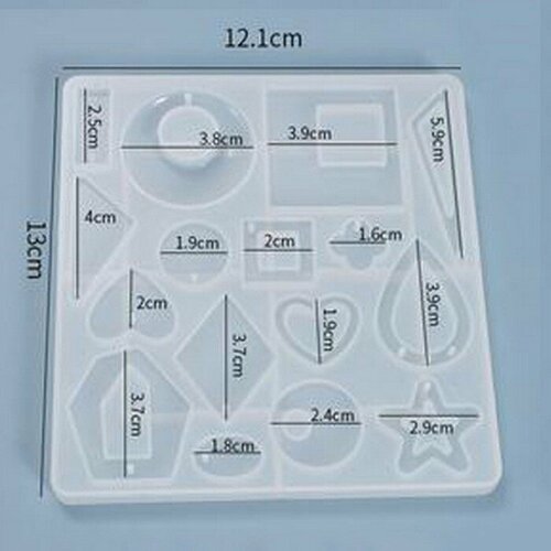 Силиконовый молд ассорти (15 форм в одном) для эпоксидной смолы / для сережек, кулонов, подвесок