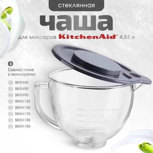 Прозрачная стеклянная чаша Artisan для KitchenAid объемом 4,83 литра