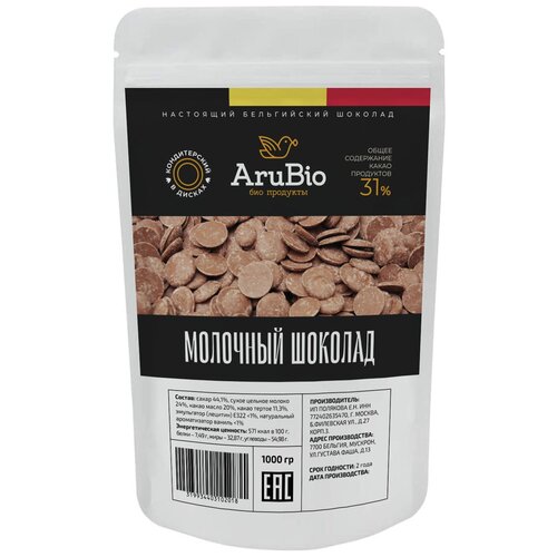 Бельгийский молочный шоколад в каплях кондитерский 1000 гр. 31% какао Arubio