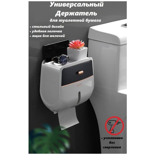 Держатель для туалетной бумаги Диспенсер с ящиком и полочкой, белый с серым