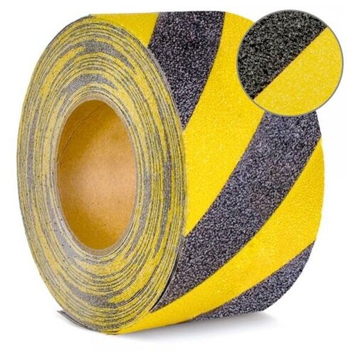 Противоскользящая лента самоклеющаяся, желто-черная, 75 мм х 18.3 м