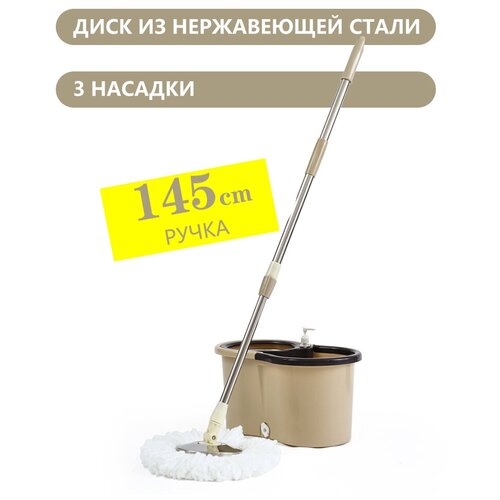 Комплект для уборки AVIK / Швабра с отжимом и ведром (145 см ручка + 3 насадки + дозатор для моющего средства)