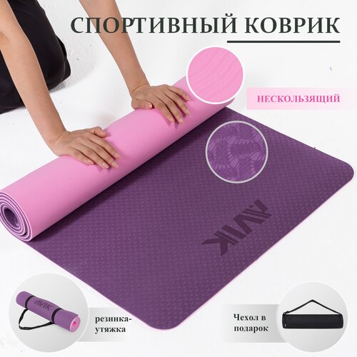 Нескользящий спортивный коврик для йоги, фитнеса, пилатеса, растяжки AVIK (материал: термопластичный эластомер)