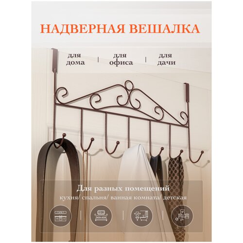 Надверная вешалка, навесная вешалка на дверь AVIK: 7 крючков, установка без сверления
