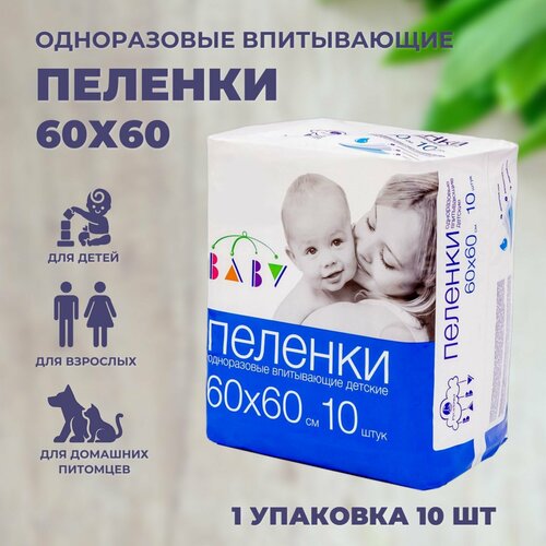 Пеленки одноразовые детские 60х60 см, для новорожденных медицинские 10 штук