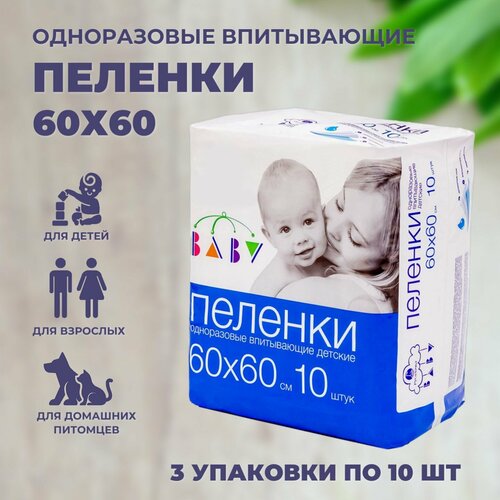 Пеленки одноразовые детские 60х60 см, для новорожденных медицинские 30 штук