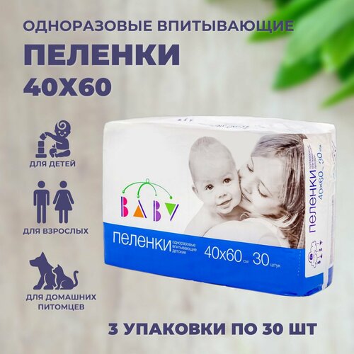 Пеленки одноразовые детские 60х40 см, для новорожденных медицинские 30 штук