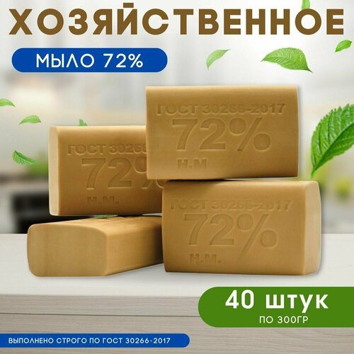 Мыло хозяйственное 72% натуральное твердое кусковое Авис, универсальное для мытья рук и стирки белья 300 гр 40 шт. в коробке