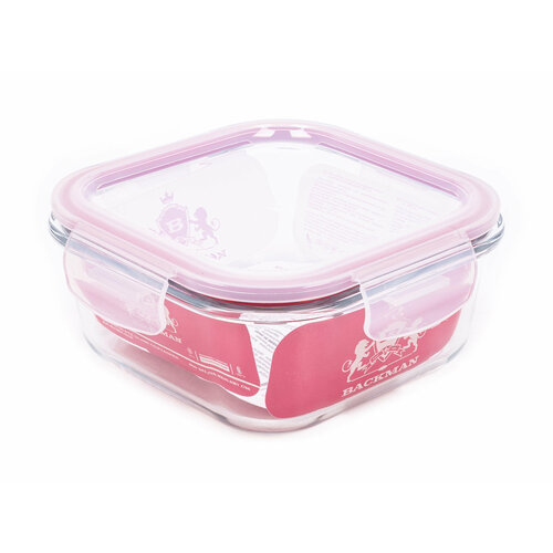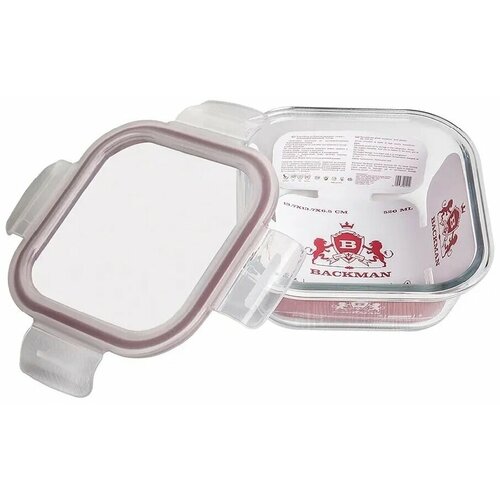 Контейнер для хранения продуктов BACKMAN / Бэкмэн из жаростойкого стекла с пластиковой крышкой квадратный объем 0.52л / емкость герметичная