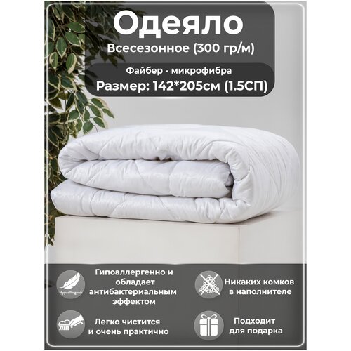 Одеяло 1.5 спальное (142*205 см), 300 гр/м, (Файбертекс, Микрофибра)