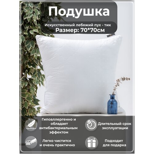 Подушка BeeTex стеганная 70*70, (Лебяжий пух, Тик)