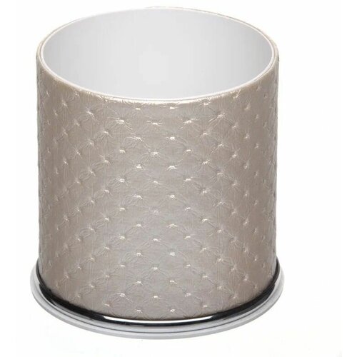 Ведро открытое (экокожа) бежевое (точки) с ободком хром 8 литров