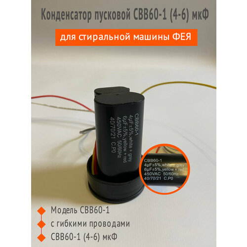 Конденсатор пусковой CBB60-1 (4-6) мкФ для стиральной машины Фея