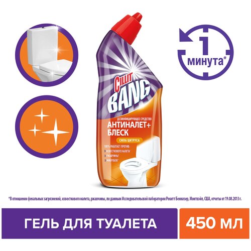 Средство дезинфицирующее для чистки унитаза туалета Cillit Bang "Антиналет + Блеск. Сила Цитруса", гель, 450 мл