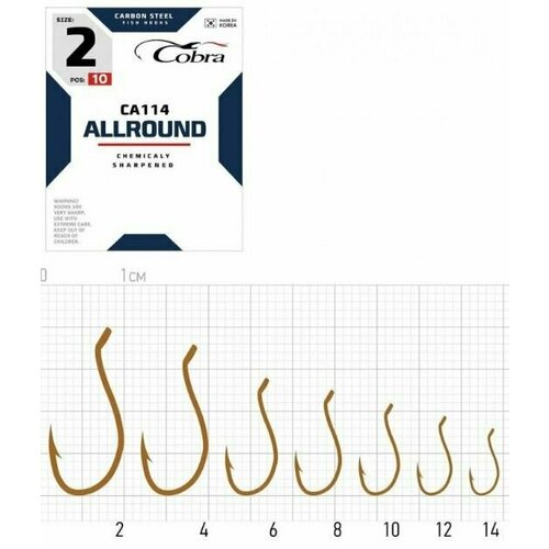 COBRA Крючки Cobra ALLROUND, серия CA118, № 2, 10 шт.