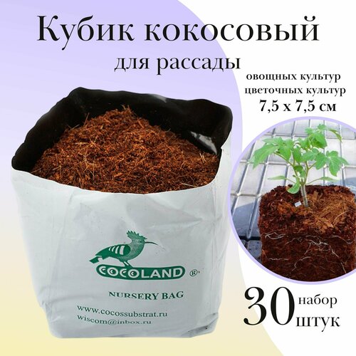 Кокосовый кубик для рассады, 7,5 х 7,5 см 30 штук
