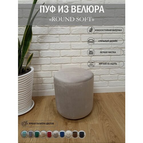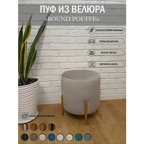 Пуфик светло-серый для прихожей круглый на ножках для спальни гостиной