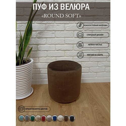 Пуфик темно-коричневый для прихожей круглый на ножках для спальни гостиной