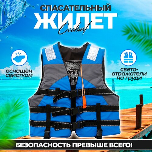 Жилет спасательный Coolsurf/Спасательный жилет для взрослых до 100кг/Жилет для рыбалки/Жилет спасательный/Жилет спасательный для лодки/ Синий/ размер 44-55