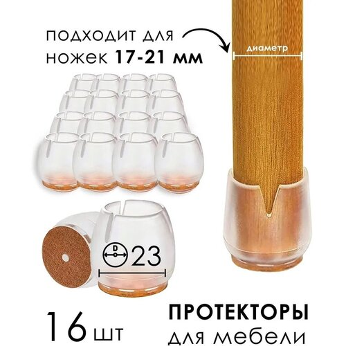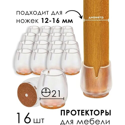 Накладки-протекторы для мебели, протекторы силиконовые защитные круглые на ножки стульев, табуреток, мебели шириной 17-21 мм, 16 шт