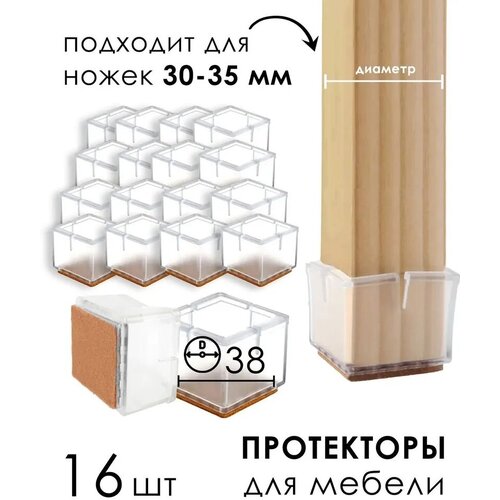 Накладки-протекторы для мебели, протекторы силиконовые защитные круглые на ножки стульев, табуреток, мебели шириной 30-35 мм, 16 шт