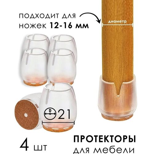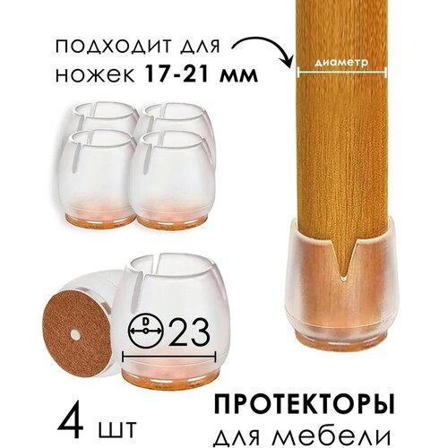 Накладки-протекторы для мебели, протекторы силиконовые защитные круглые на ножки стульев, табуреток, мебели шириной 17-21 мм, 4 шт