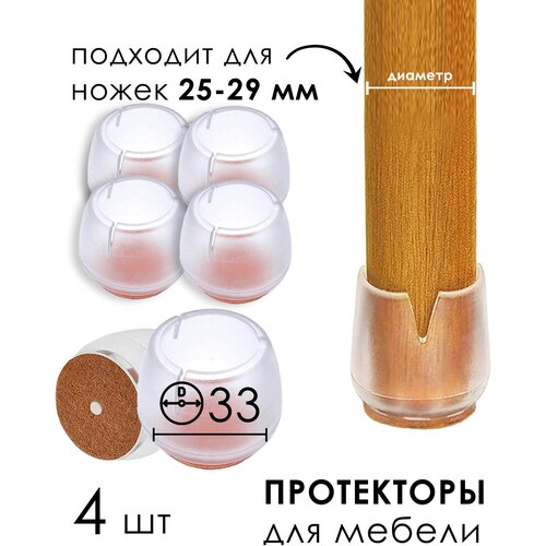 Накладки-протекторы для мебели, протекторы силиконовые защитные круглые на ножки стульев, табуреток, мебели шириной 25-29 мм, 4 шт