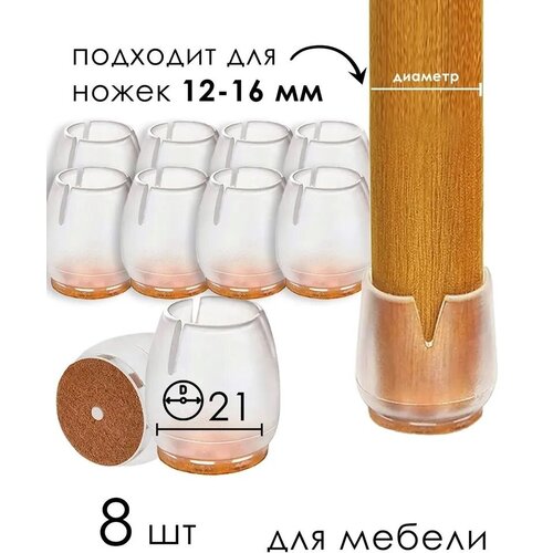Накладки-протекторы для мебели, протекторы силиконовые защитные круглые на ножки стульев, табуреток, мебели шириной 17-21 мм, 8 шт