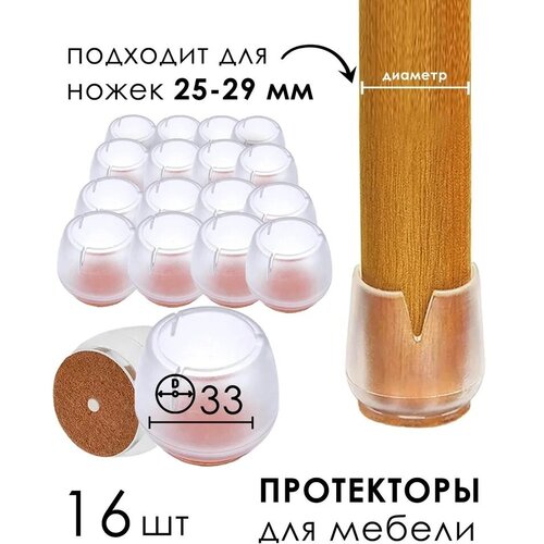 Накладки-протекторы для мебели, протекторы силиконовые защитные круглые на ножки стульев, табуреток, мебели шириной 25-29 мм, 16 шт