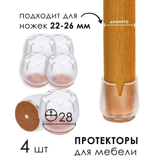 Накладки-протекторы для мебели, протекторы силиконовые защитные круглые на ножки стульев, табуреток, мебели шириной 22-26 мм, 4 шт