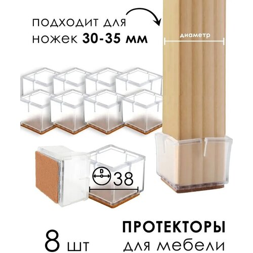 Накладки-протекторы для мебели, протекторы силиконовые защитные круглые на ножки стульев, табуреток, мебели шириной 30-35 мм, 8 шт