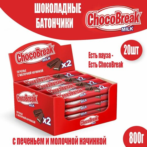 Батончики Choco Break с шоколадом и молочной начинкой, 20шт