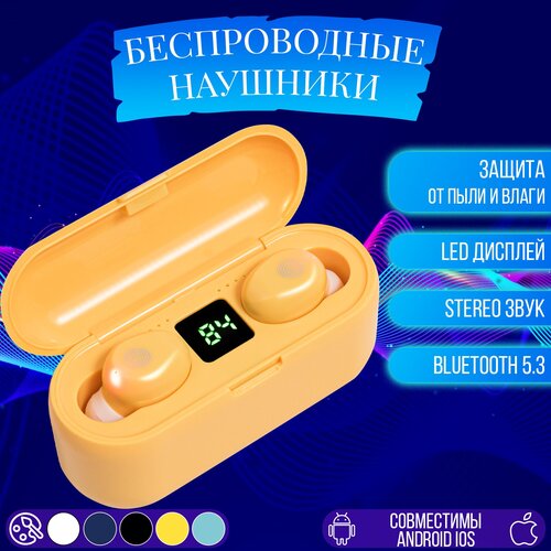 Беспроводные наушники TWS F9 (5.3) Bluetooth с микрофоном, гарнитура, желтый